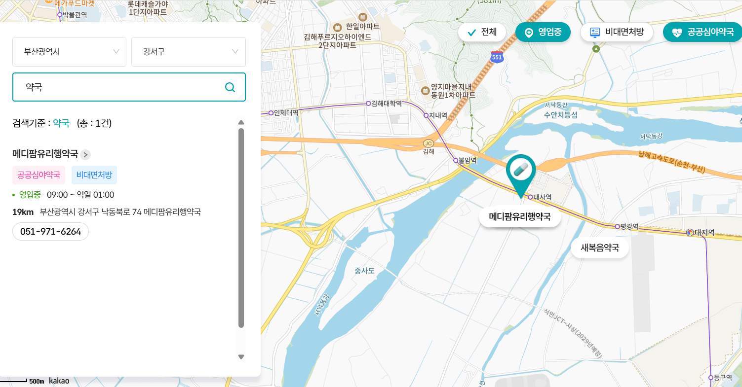 - 꿀팁: 명지, 녹산, 대저 등 주요 주거지·상권 주변 약국을 먼저 확인하면 편리합니다.