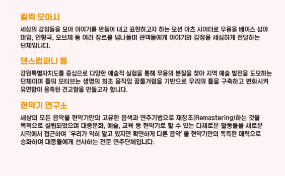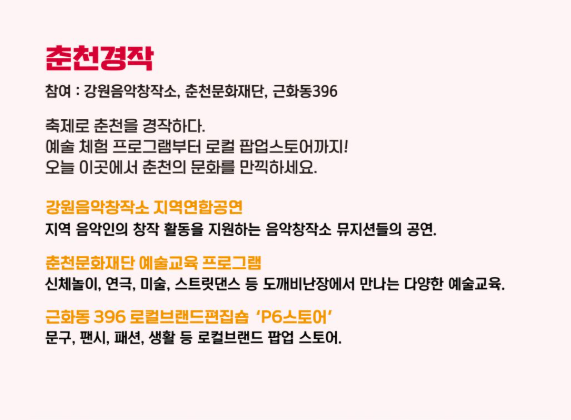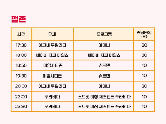 - 야외 공연이므로 돗자리나 이동식 의자, 가벼운 방풍 자켓을 챙기면 편안합니다.